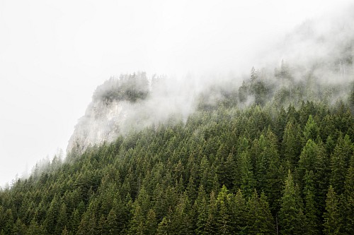 Lautlos winden sich die Bäume umhüllt im ewigen Nebel